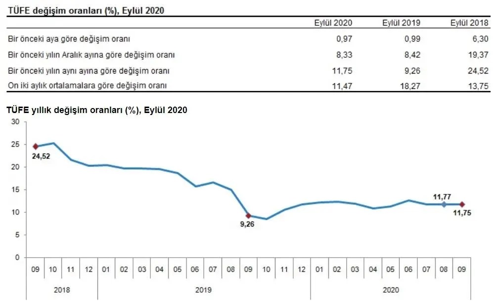 Türkiye i̇statistik kurumu tarafından yayımlanan fiyat endekslerinin aylık ve yıllık yüzde değişim oranları aşağıdaki tabloda listelenmiştir. Tüfe yıllık değişim oranları (%), aralık 2020. Yıllık düşüş gösteren tek grup %0,32 ile giyim ve ayakkabı oldu. Bir önceki yılın aynı ayına göre artışın . 2021 mayıs ayı itibariyle bir aylık enflasyon yüzde 0,89 oranında, oniki aylık enflasyon yüzde 16,59 oranında ve yıllık ortalama enflasyon ise yüzde 14,13 .